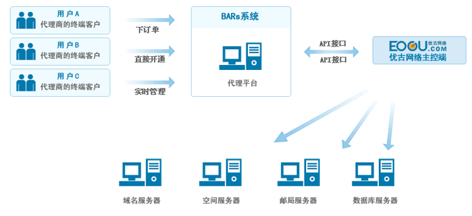1、BARs系統可以使用代理商自己的任何域名,網站體現出代理商的形象。 2、BARs系統適合于大部分需要有自己獨立網站的代理商,他的下屬客戶通過這個網站進行注冊、登陸、購買產品——這些都不需要代理商為客戶操作,而是由客戶自行進行,這樣讓代理商擺脫替客戶操作的繁瑣過程,而能夠把精力和人力放在發展客戶,開拓市場。