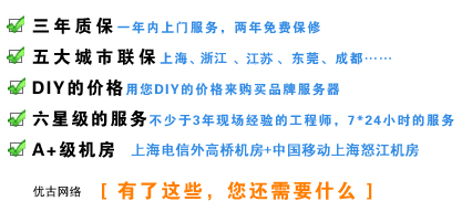 永陽網絡IDC中心, 依托中國電信 中國網通強大的技術力量和網絡資源,以千兆級高速物理光纖直接接入CHINANET骨干網,并以冗余線路結構保證高速可靠。主機租用 托管機房設施一流,兩路市電、自備發電機及UPS多路電源保證。專業空調上送風技術、獨立溫控區保證通風、恒溫、恒濕,煙霧探測報警系統、氣體滅火保證設備完好。并有公司專業技術人員提供7 x 24標準電信級專業技術保障。托管機房有完善的出入管理制度,確保用戶托管的設備安全。根據不同主機租用 托管用戶對接入帶寬的需求,可提供2M-100M(獨享或共享)帶寬供用戶選擇。 |